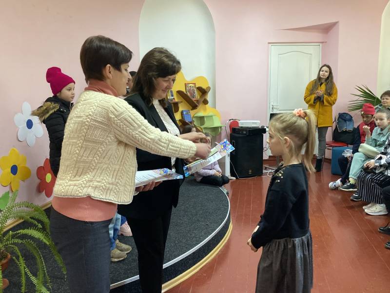 Сьогодні у бібліотеці пройшло нагородження подяками та вручення подарунків найактивнішим діткам, які брали участь у різноманітних творчих конкурсах і досягли чималих успіхів.